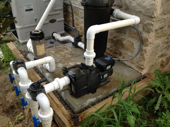 We do the electric per code and the way we would want it at OUR house. We included a 100Amp electric panel upgrade on every project. Why? Because you need it. Very few homes are ‘provisioned’ for a pool even if the builder told you so. Our panel includes a timer, remote control, transformer for lighting, relays for future upgrades, a convenience plug outlet, and will support a heat pump, salt system, or any other option you may want to add today or down the road. We also run the conduit from your existing breaker box to your new pool breaker / control panel. Again...don’t be fooled and talked into calling some ‘guy’ on Craig’s list to wire up your pool. Click here for a photo of an equipment pad.